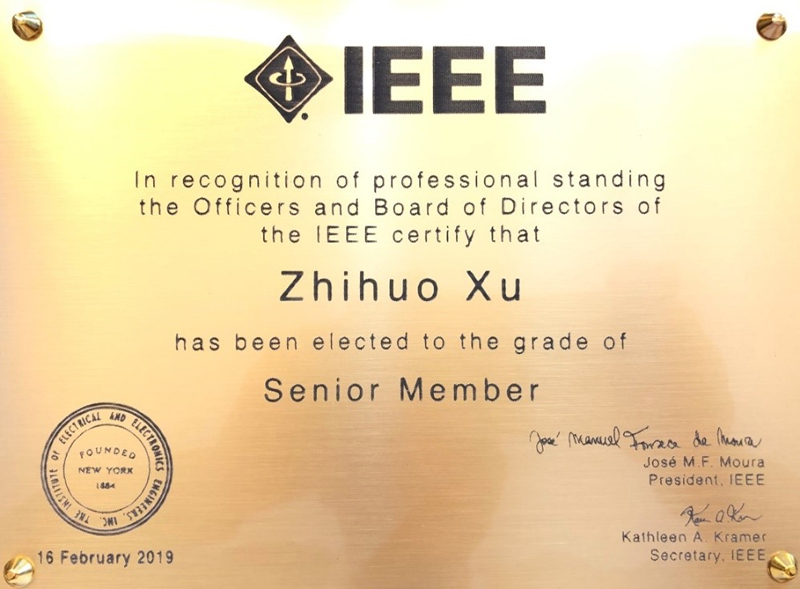 国际电气与电子工程师协会成立于1884年,致力于电气、电子、计算机工程和科学相关领域的开发和研究,是全世界最大的跨国专业学术组织。IEEE高级会员候选人必须是IEEE相关技术领域中有十年以上从业经验的工程师、科学家、或教育工作者,并在近五年内成果显著,在专业领域有突出成就,其学术能力得到国际同行的认可。IEEE高级会员资格需通过专家推荐和IEEE专门委员会议评审,目前全球43余万位IEEE会员中只有8%的会员能够成为高级会员。