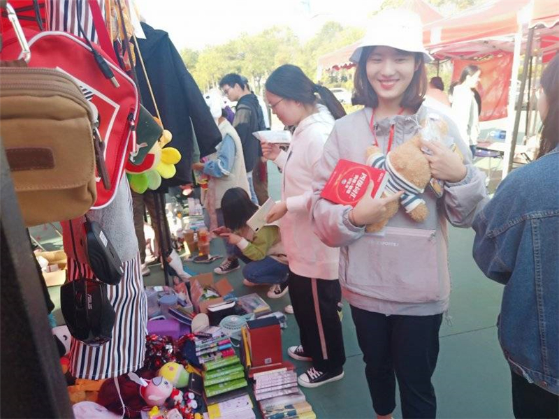 活动当天,学院红十字分会的干事们组建成值班小分队,三四个人为一班,一班值勤一个半小时。上午8点半,活动正式开始。开始来买东西的,大部分都是买小说、传记、名家著作等,真可谓读书须勤奋。或许在爱读书的眼中:书中的每一个字,都是珍贵的;每一段句子,都是富有思想的;每一篇文章,都是过去与未来;每一本书,都凝聚着智慧与营养。接下来,买东西的人陆续前来,看看这个想要,看看那个也想要,却又露出了迟疑不决的表情。这时,张源虎会长喊话了:“都来看一看啦!多买打折,还送赠品!”。一听要打折,还有赠品,由犹豫不决一下子转变为先下手为强!很快时间到了下午4:30,活动在夕阳西下的余晖下落下了帷幕。尽管活动现场很是忙碌,但志愿者们总会带着乐此不疲的微笑,迎接每一位来的顾客。在这个秋意正浓的时节,一次意义非凡的经历留下了一段难忘的回忆。
