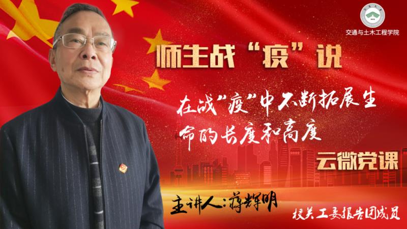 3月14日,yl23455永利集团第二堂专题云微党课如期上线,校关工委报告团成员、yl23455永利集团关工委副主任蒋辉明受邀为学院青年学子带来了题为《在抗‘疫’中不断扩展生命的长度和宽度》的云微党课。