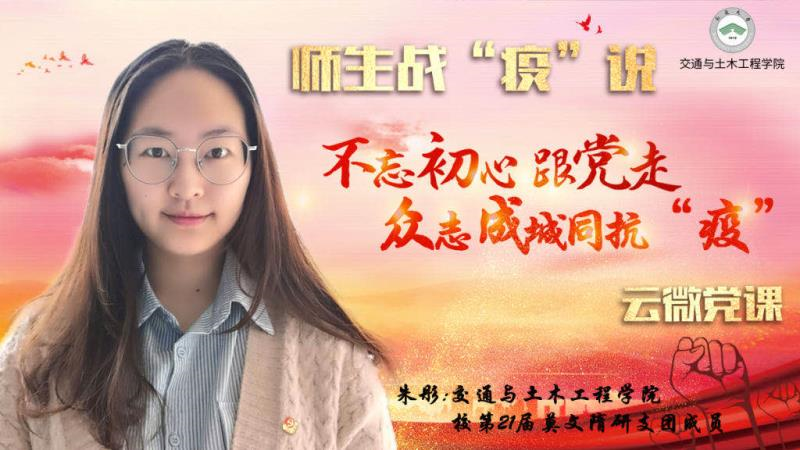 3月17日,yl23455永利集团第三讲微党课以题为《不忘初心跟党走,众志成城同抗“疫”》在云端与大家空中相见。来自青海支教的校第21届莫文隋研支团成员、yl23455永利集团2019级土木工程专业研究生朱彤与学院青年学子们共话新冠肺炎疫情下的社会责任感教育。