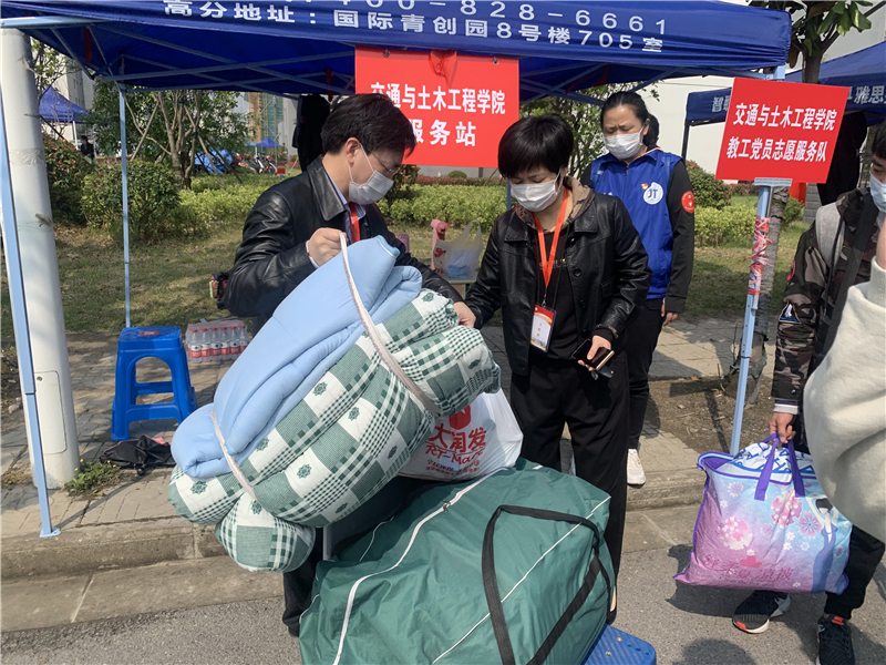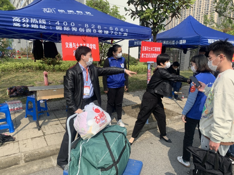 学院领导高度重视此次学生返校复学工作,在学生返校前,学院多次召开党政联席会、支部书记会议、辅导员班主任会议,学习、传达学校相关工作会议精神,研究、部署做好防疫新形势下学院学生返校的各项准备工作,并积极动员教师党员和教职员工积极参与到学生返校当日的志愿服务工作中。20日,学院党政领导亲自迎接,35名教师主动请缨,披上了学院志愿者的蓝马甲,来到学生返校报到一线热情迎接学生的到来,昔日站在三尺讲台的他们,如今扮演起了“搬运工”“服务员”,将自己的私家车变成了免费的“搬运车”,忙前忙后为学生搬运大大小小的行李,还主动引导学生们完成返校的各项程序,叮嘱他们做好各项防护工作。此外,学院有30多名志愿者主动报名,踊跃参与到返校志愿服务工作中,为远道“回家”的学子们提供了细致入微的服务。送孩子返校的学生家长们对学院的具体安排表示非常放心和满意。