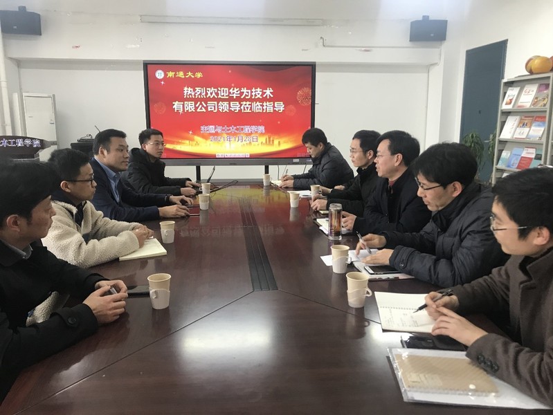 1月28日下午,华为技术有限公司南通政企业务部总经理赵宏博、江苏人才生态部经理杨鹏,华为本地合作伙伴江苏华远信息技术有限公司黄克强经理等一行应邀来我院交流。
