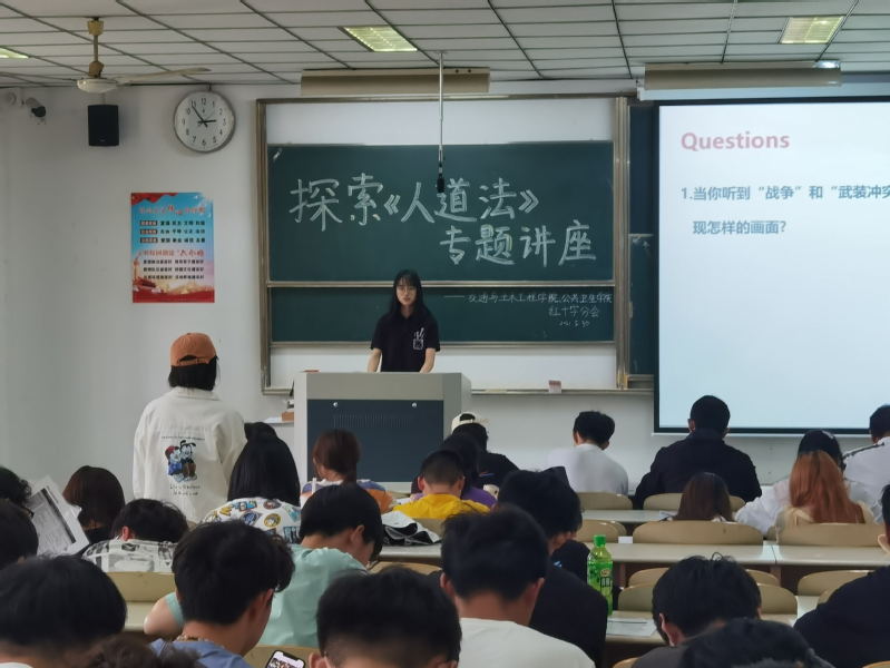 其次,yl23455永利集团红十字会宣传部的赵龙和蔡宇航、救护部高浩杰和公共卫生学院红十字会救护部汤舒茗、宣传部费灵康五位红会成员,分别生动形象地讲述了人道视角、对武装冲突的限制、人道法在行动和武装冲突中的保护、应对武装冲突的后果这五个方面的知识,其中聚焦儿童兵专题,通过互动答题和浏览相关的录像活跃了现场气氛,带领大家阅读了《如果她说的是真的呢?》的故事,并进行了小组讨论,完成“两难困境作业表”,让同学们在寓教于乐中更好地了解了人道法的起源、发展、意义和具体运用。