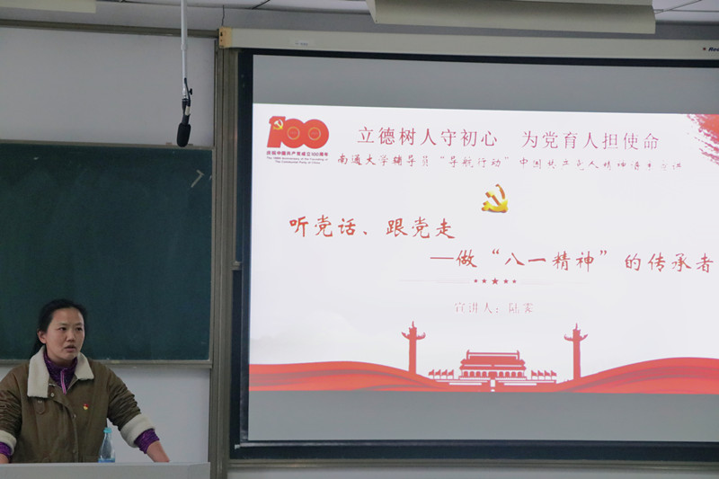 学院本科生第一党支部书记陆霁做题为《听党话,跟党走——做“八一精神”’的传承者》的首场专题党课。她以丰富的史料、极具感染力的故事,带领学员们深入了解“八一精神”的发展及其内涵,从知党是听党话的理论基础、信党是听党话的思想根基、跟党走是听党话的行为标准三个方面,向学员阐述了了解党的历史、宗旨,才能明辨自身发展之路;相信党的决定、道路,才能坚定自己选择之路;牢记党员身份,不计个人得失,才能走稳未来成长之路。