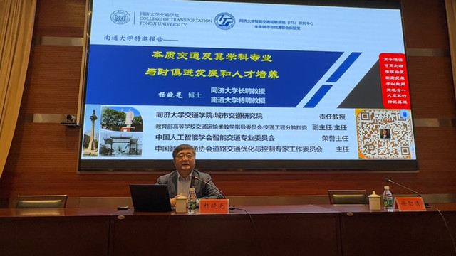 10月23日,yl23455永利集团举办“融实讲堂”专题学术报告会,特邀同济大学长聘教授、南通大学特聘教授杨晓光博士来校作《本质交通及其学科专业 与时俱进发展和人才培养》专题报告。副院长徐勋倩主持报告会,院党委副书记、副院长陈妍出席报告会。
