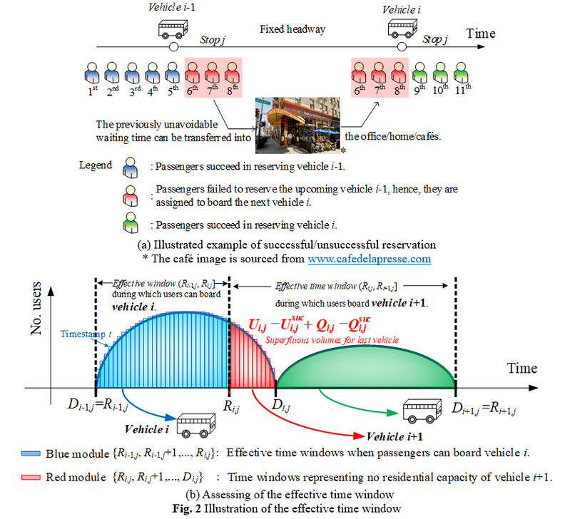 当前,策应交通强国发展战略,智能公共交通系统应运而生,需求响应式公交新模式在提升城市出行效率方面具有发展潜力。因客流分布不均衡和出行需求动态变化,传统公交系统存在着难以应对供需失衡、乘客等车时间不确定等难题,造成了一定程度的运力资源浪费。为此,研究团队构建了以乘客等待时间、时刻表波动和车队规模最小化为目标的多目标混合整数规划模型,结合预约服务,融合了有效切割、蒙特卡洛模拟及邻域搜索的两阶段算法,借助滚动时域技术跟踪实时预约需求,并利用深度学习进行短期客流预测,有效提升了响应式公交系统的响应能力与运营效率。模型通过“预测后优化”的协同架构持续更新实时预约数据、优化调度时刻表、动态调整车辆容量分配,优先处理预约乘客需求并动态优化车队规模,高效解决了响应式公交系统中动态需求与有限资源的协同问题。