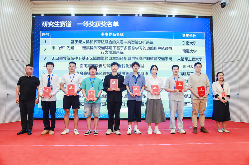 本届大赛由中国自动化学会、全国高校综合智能交通专业联盟主办,福建理工大学、中国自动化学会综合智能交通专业委员会承办,设置本科生赛道、研究生赛道和企业挑战赛道。赛事吸引了包括同济大学、山东大学、火箭军工程大学等101所高校的积极参与,共决出本科生和研究生赛道一等奖27项、二等奖63项、三等奖84项。由我校研24人工智能曾焘、杜旭伟、蔡光亚与研24交通运输苗欣、薛晓帆组成的参赛团队(指导教师:汤天培、嵇天博)经过激烈角逐,凭借出色的创新成果和稳定的现场表现,喜获一等奖。